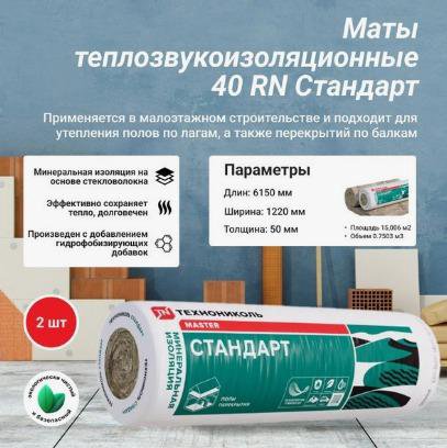 Утеплитель ТЕХНОБЛОК Технониколь (1200х600х50) 5,76 м2, плотность 45- 8 штук в упаковке